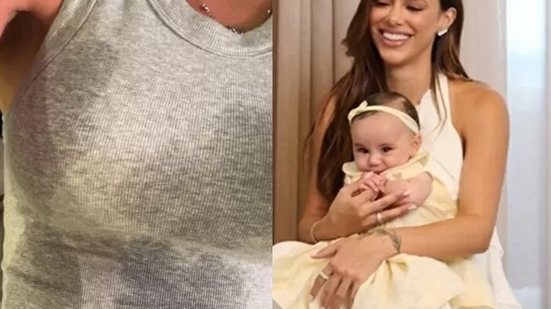 Bruna Biancardi compartilhou uma foto mostrando um perrengue que passou com a Mel, sua filha mais nova com o jogador Neymar. Na imagem, ela aparece com a blusa molhada.