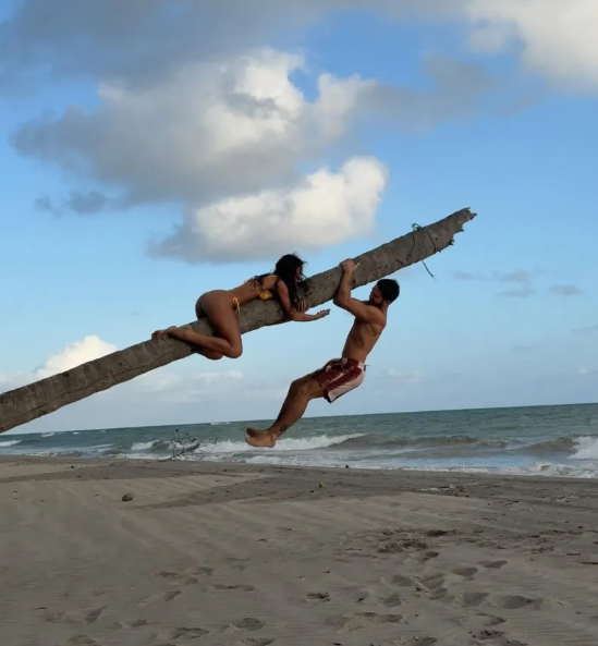 Nesta quinta-feira (2), o filho do cantor Leonardo compartilhou um carrossel de fotos em Milagres. Entre os registros, eles posaram juntos pendurados no tronco de um coqueiro enquanto aproveitam o verão.
