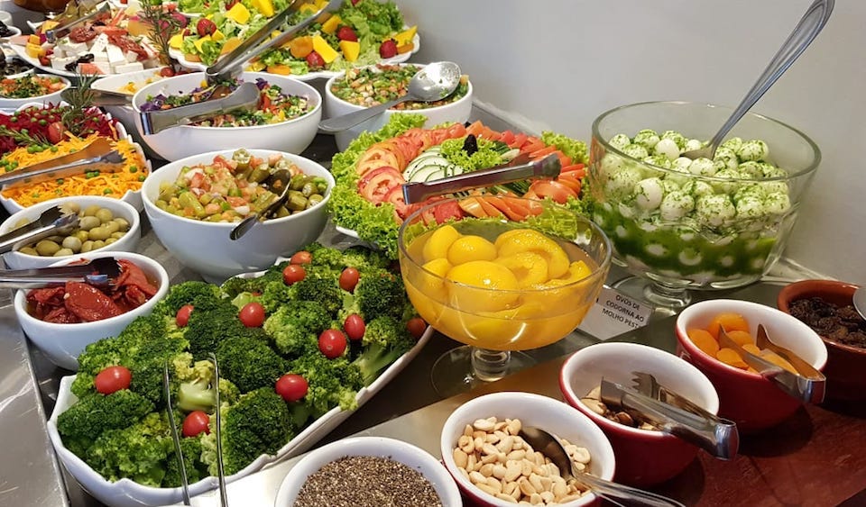 Cores e sabores do bufê de salada da Mariah