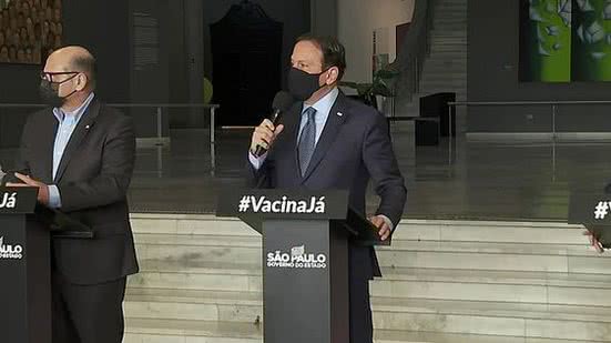 O governador de São Paulo, João Doria (PSDB), voltou a dizer que a liberação dos insumos só ocorreu após esforços do governo estadual e acusou o presidente Jair Bolsonaro de oportunismo.