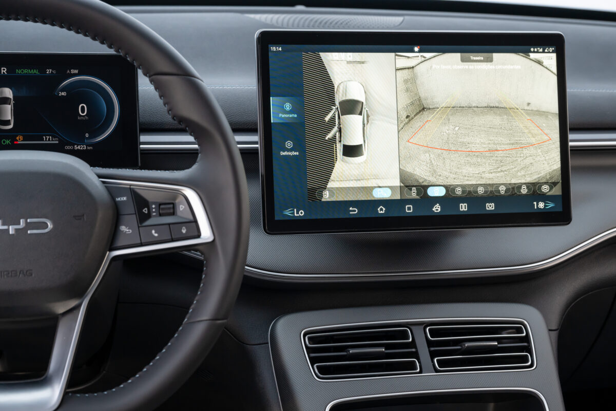 Destaque para a tela flutuante de 12,8” e rotação elétrica, com Android Auto e Apple CarPlay, conexão com internet, um painel de instrumentos LCD Full-View de 8,8”, seletor de câmbio eletrônico por botão rotativo e o Sistema de Cockpit Inteligente da BYD, com comandos de voz intuitivos e atualizações de sistema Over-The-Air, que podem ser feitas remotamente, assim como acontece com nossos smartphones, por exemplo.