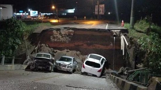 A cabeceira da Ponte Santos Dumont, na cidade de Brusque, a 126 km de Florianópolis, cedeu na noite de hoje, com três carros sobre ela. Conforme o Corpo de Bombeiros, quatro pessoas estavam nos veículos, mas saíram ilesas do local e não precisaram de resgate e nem encaminhamento a alguma unidade hospitalar.
