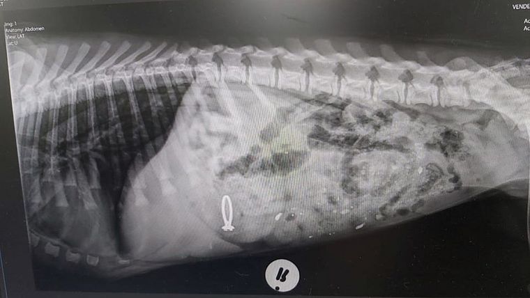 Foi realizado o procedimento de raio X e logo o anel ficou visível na barriga do cão. O veterinário induziu Pepper ao vômito, e conseguiu tirar o objeto, que voltou novinho em folha à sua dona. Alguns comentários diversos sobre a situação foram gerados na rede social, “Desculpe mas eu não conseguiria fazer um cãozinho ficar enjoado. Preferiria esperar as consequências”, um dos internautas comentou, discordando da atitude do veterinário.