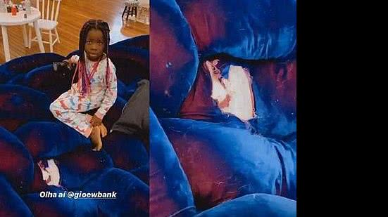 No vídeo, o ator filma o estrago no móvel e questiona Titi sobre o que poderia ter causado o rasgo. "Muito legal! Quem foi que fez isso, Chissomo?", ele perguntou. A menina não pensou duas vezes em "dedurar" o responsável: "Foi a Lasanha!", afirmou.