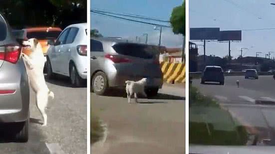 No vídeo registrado por um motorista que estava em outro veículo, é possível ver o animal tentando voltar para o carro. Em seguida, o trânsito flui e o animal sai desesperado correndo atrás do carro. Não é possível ver como a situação termina.