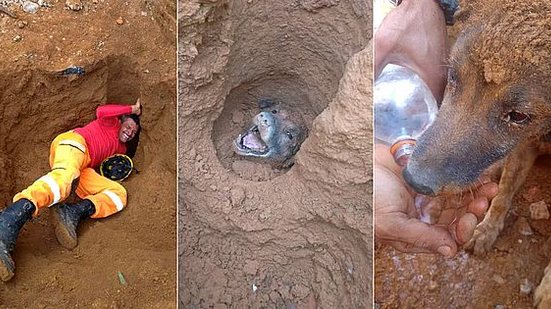 Ainda conforme os militares, o cão estava dentro de um buraco de broca com aproximadamente 30 centímetros de diâmetro e 3 metros de profundidade. Inicialmente, eles tentaram resgatar o cão com cordas, mas a equipe precisou ir ainda mais longe para retirar ‘Sargento’ do local.