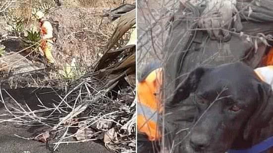 Socorristas do Corpo de Bombeiros resgataram um cão labrador preso há mais de seis dias em uma pedreira no Córrego dos Fagundes, em Reduto, na Zona da Mata mineira.