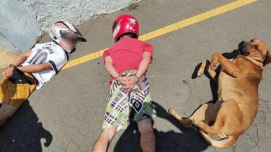 "É comum assalto na região com dois indivíduos em uma moto. Quando o abordamos, fugiram e com isso fomos atrás. Sempre fazemos esse patrulhamento, agora essa cena do cachorro não é comum. Virou algo bem inusitado", disse o soldado.