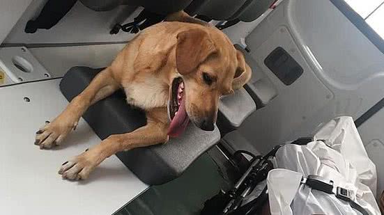 Os bombeiros dizem que a equipe permitiu a permanência do animal na Unidade de Resgate devido à necessidade de remoção do paciente e a tranquilidade da cadela.