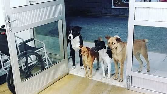 Quatro cachorros olham atentamente pela porta de um hospital, enquanto, lá dentro, seu tutor recebe atendimento. A cena, de respeito e cumplicidade, foi registrada na madrugada do dia 9, em Rio do Sul (SC). O paciente é um morador de rua, segundo funcionários. Ele procurou o Hospital Regional Alto Vale por volta das 3h, tomou medicação para dor e ficou ali por aproximadamente uma hora, sob os olhares ansiosos de seus companheiros.