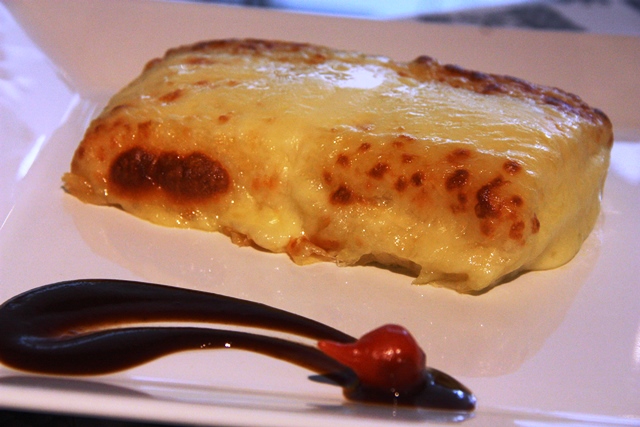 Croque Le Brulé: pão de forma, queijo mussarela, provolone, presunto e mussarela abraçando pão