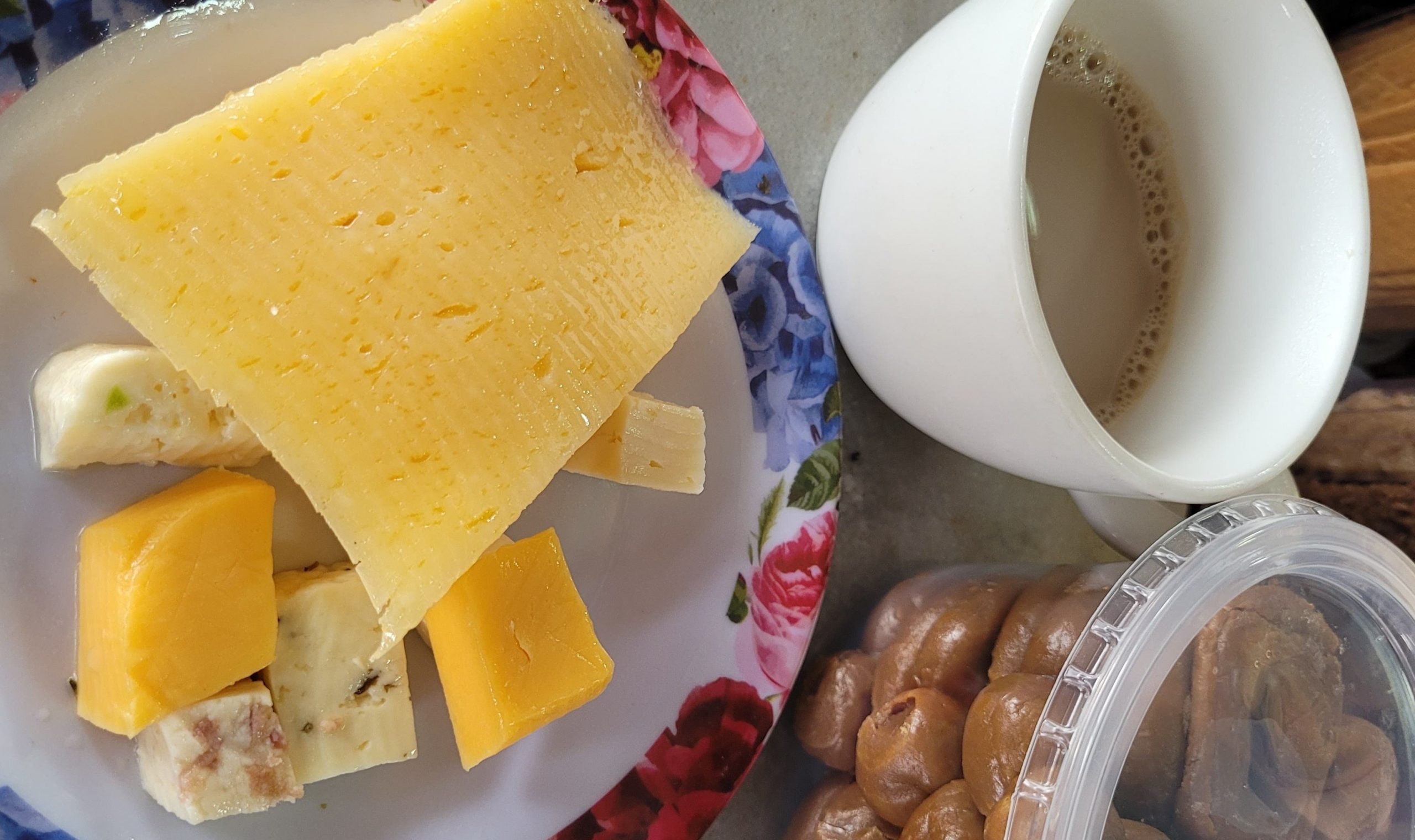 Gentileza gera gentileza, e quase todo mundo leva para casa um pouco de manteiga, queijo manteiga, doces, bolos, coalhada (maravilhosa) e os queijos coalhos temperados (charque, pimenta, azeitona, orégano e calabresa). Também tem os lanches, como as tapiocas e o sanduíche de queijo manteiga (amo). Por dia são, em média, 50 litros de café e 20 litros de leite fresquinho para nosso deleite, tudo a custo zero para os viajantes.