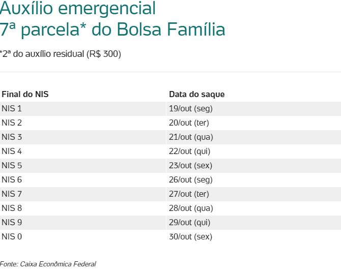 Até 30 de outubro, todos do Bolsa Família que têm direito ao auxílio residual poderão sacar a segunda parcela. Os saques serão liberados por ordem do dígito final do NIS.