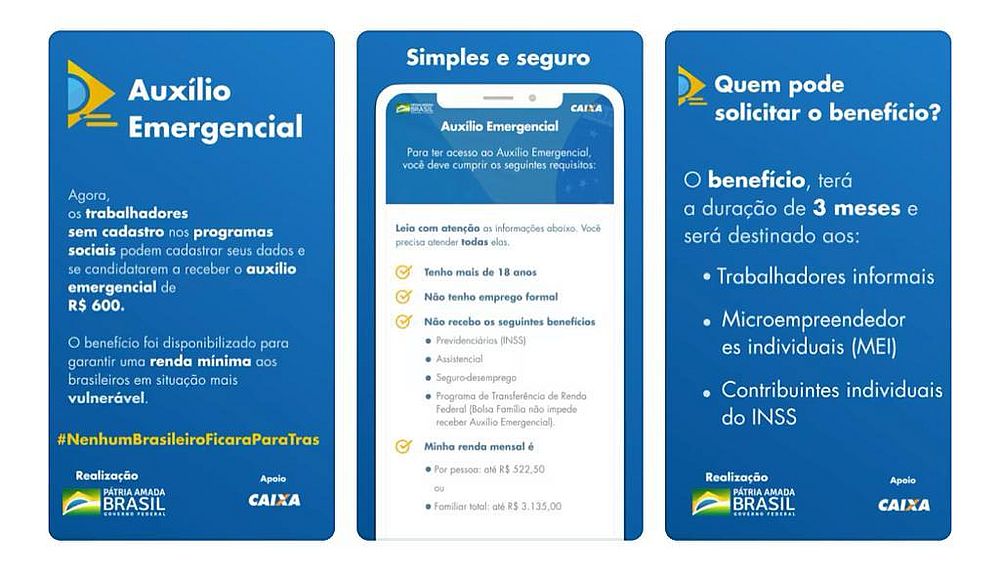 Foi disponibilizado na noite de ontem (06) o aplicativo "Caixa Auxílio Emergencial", para cadastro do auxílio emergencial de R$ 600. O app está disponível para baixar nos sistemas Android e iOS.