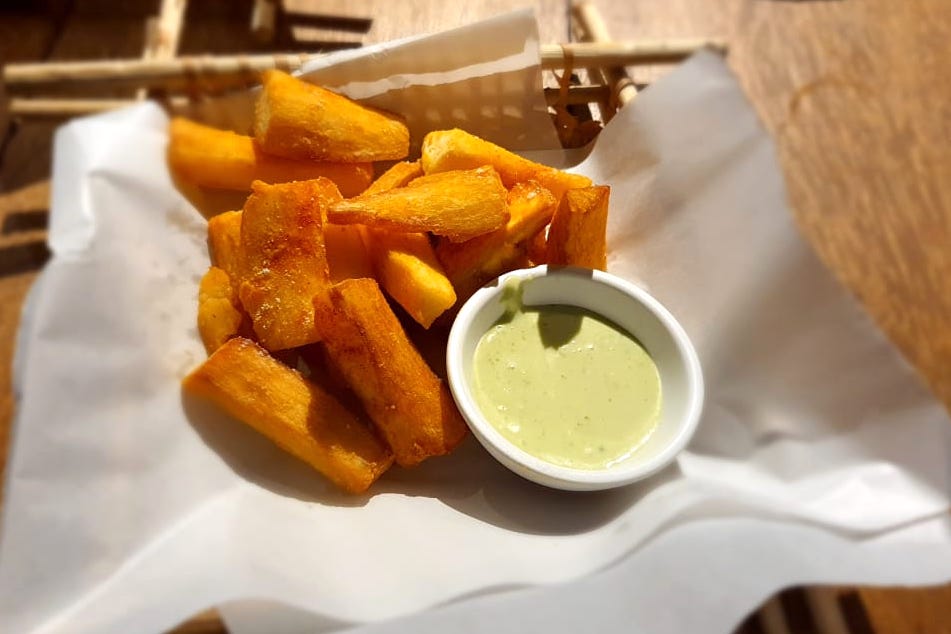 Macaxeira frita, petisco clássico para acompanhar os chopes da Caatinga Rocks