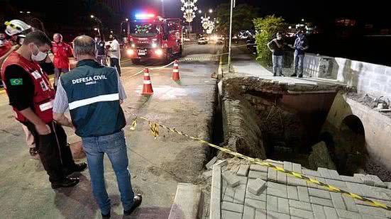 Investigação - Após o resgate, técnicos do Instituto Geral de Perícias e da Polícia Civil estiveram no local e fizeram um registro preliminar com fotos. Na terça-feira (23), profissionais da Secretaria de Infraestrutura Urbana e da Defesa Civil continuam a vistoria com uma avaliação detalhada da estrutura do local. Por enquanto, a pista no sentido Sul-Norte está interditada.