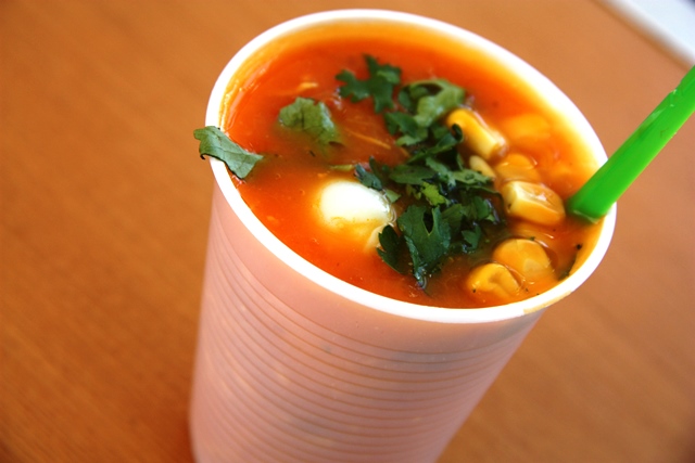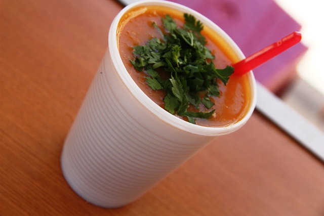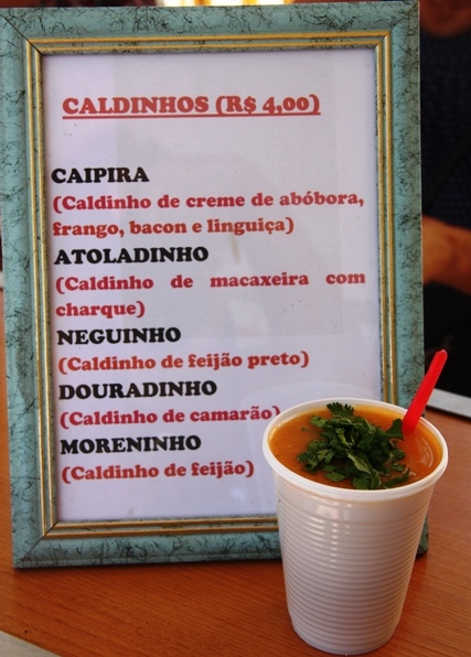 O nome do ponto é “Sr. Caldinho” (do lado de fora da Panela do Chef) e confesso que passava pela frente, mas nem paquerava o local, até que um leitor (infelizmente esqueci o nome) enviou a sugestão dos caldinhos. Eu disse que iria provar, porém demorei a cumprir minha promessa. Quero agradecer a dica, valeu, e muito. A produção dos caldinhos começa na noite do sábado e são finalizados no domingo de manhã. Detalhe: a alagoana só trabalha com produtos de primeira. O pequeno empreendimento existe há cinco anos.