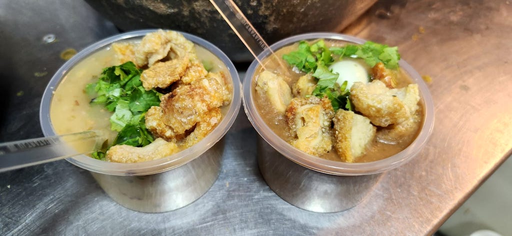 Eu amei o de costela! O caldo é bem encorpado, com pedacinhos da costela e polvilhado por torresmo, cheiro verde e codorna. Mas se o freguês desejar, pode consumir o caldinho sem os acompanhamentos. Também adorei o de camarão, principalmente pela leveza. A quantidade do leite de coco é na medida certa, e, com os crustáceos, claro, nada de torresmo. Mas há bastante coentro e ovo de codorna, afinal, já diz a música, na voz de Gonzagão: “Eu quero um ovo de codorna pra comer/ O meu problema ele tem que resolver…” Então fica a dica do Caldinho Bom Sabor, de de Penedo para Maceió.