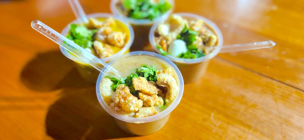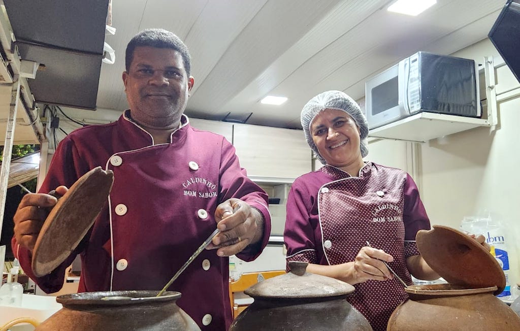 Carne de costela em cubos, caldo grosso e, por cima, uma generosa porção de torresmo bem crocante, ovo de codorna e coentro… É bom? Não, se mostra, e quem bem faz o caldinho de costela é o casal Ademilson de Jesus e Rosimeire Pereira, de segunda a sábado, das 17h às 22h, no Caldinho Bom Sabor (@caldinho_bomsabor), no food park da Pajuçara. E tudo começou na cidade de Penedo… Quando o desemprego bateu à porta, os penedenses migraram para Maceió e trouxeram na bagagem a receita dos caldinhos.