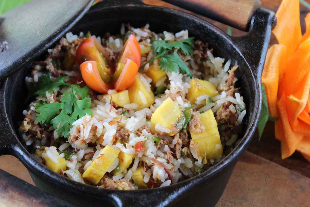 Riqueza – O arroz de quenga rica é mistura bem saborosa do charque, paio, ovo, banana e couve. A iguaria é servida na panela de ferro. Receita para compartilhar.