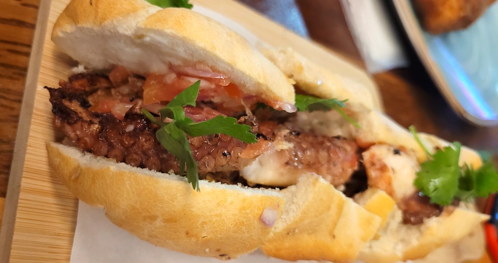 Aliás, o polvo está bem representado. Além da versão no sanduíche, tem ele no arroz e também com crocante com cebola crocantes.