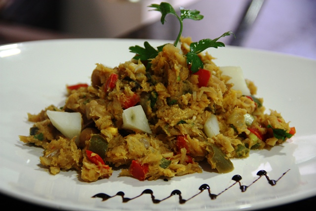 Azaleia – O bacalhau sempre combina com batata inglesa, mas, para o peixe ficar mais leve, no lugar da batata entrou o grão de bico e a batata doce. No prato acompanha ovos cozidos, tomates, azeitonas, berinjela, abobrinhas, chips de alho e pimentões coloridos. Alguns fios de azeite aromatizado (com ervas) é mais que perfeito. Este é de pedir bis.