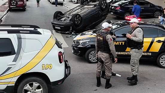 Imagens compartilhadas na internet mostram que o veículo, aparentemente de modelo Onix, ficou com o teto junto ao asfalto após o capotamento. O acidente chamou a atenção de populares que se aglomeraram no cruzamento das vias.