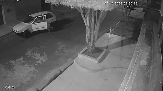 O criminoso aparece nas imagens, em um primeiro momento, observando a região e analisando a movimentação na rua para depois se aproximar do veículo, de modelo Uno 91 e de cor branca. Em seguida, ao perceber que ninguém o vigiava, ele consegue abrir a porta, tirar o veículo da calçada e arrastá-lo pela pista. Mais à frente, o homem teria realizado uma ligação direta para dirigir o Uno e fugir do local.