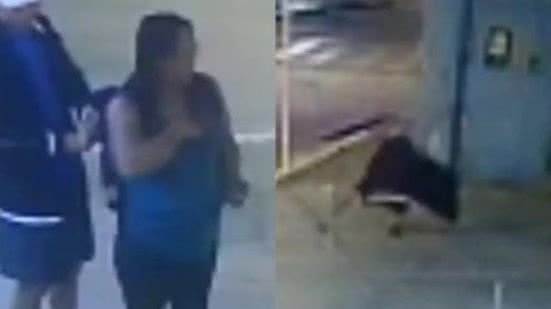 Em um primeiro momento, à meia-noite, ambos estão saindo do estabelecimento e a câmera de segurança flagrou o momento em que o indivíduo está guardando algo na mochila que está nas costas da mulher, enquanto ela armazena dentro da calça um objeto que aparenta ser um aparelho celular.