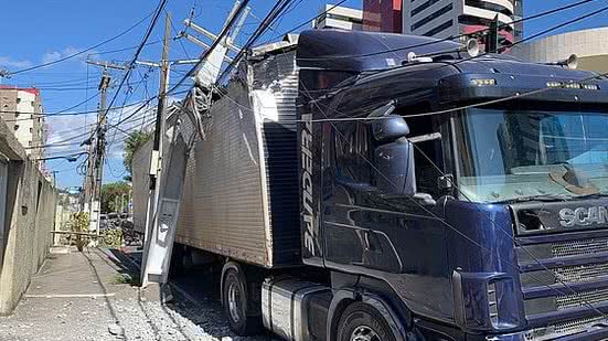 De acordo com o que foi levantado no local do acidente, o caminhão teria passado na faixa próxima à calçada e parte do baú atingiu a estrutura do poste, que já estaria inclinada, segundo relato de moradores. Com o impacto, a parte superior do baú ficou destruída e a fiação do poste também foi atingida.