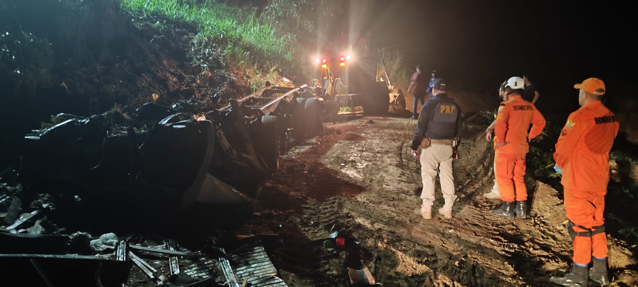 O Corpo de Bombeiros recebeu o chamado às 02h12 e enviou 11 militares em três viaturas para o local. "As guarnições foram acionadas para atender a um capotamento de caminhão ocorrido na Curva da Melancia, envolvendo duas vítimas, ambas com aproximadamente 25 anos, que infelizmente vieram a óbito", informou a corporação.