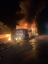 Um caminhão bitrem carregado com tapetes pegou fogo na noite dessa terça-feira (14), em um trecho da rodovia federal BR-101, entre os municípios de Flexeiras e Joaquim Gomes, no interior de Alagoas.