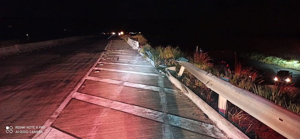 A PRF informou que o semirreboque teria se desprendido do cavalo trator e caído em desnível à margem direita da rodovia. A barra de proteção que fica ao lado do acostamento foi destruída com a perda do controle do veículo.