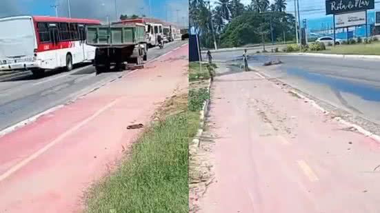 Um caminhão derramou óleo em um trecho da Avenida Rota do Mar, no bairro de Guaxuma, Litoral Norte de Maceió. O caso aconteceu na manhã desta segunda-feira (14), no sentido Benedito Bentes, no trecho próximo à orla.