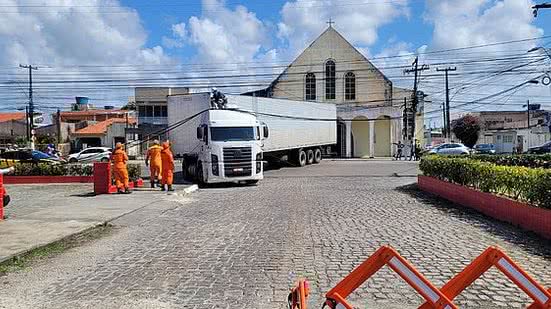 De acordo com a assessoria do Bombeiros, o motorista do veículo de grande porte realizou uma manobra de retorno e a parte superior do caminhão tocou na fiação que estavam erguidas nos postes. A Equatorial foi acionada, mas foi constatado que os fios eram de internet, portanto, não se tratou de cabos energizados.