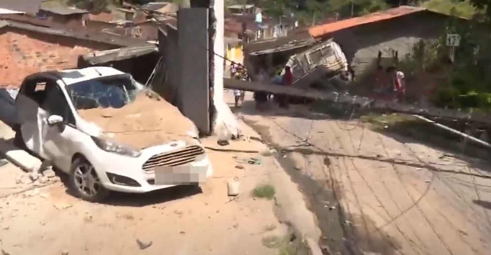O motorista de um caminhão que transportava material de construção perdeu o controle, bateu em um carro estacionado, arrastou poste de energia e invadiu a sala de uma residência na ladeira da grota Givaldo Carimbão, no Benedito Bentes. O acidente aconteceu no final da manhã desta quarta-feira, 30, na parte alta de Maceió.