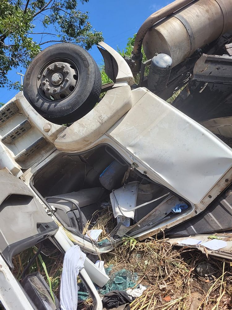 Os militares também relataram que o caminhão teria tombado em um trecho conhecido como curva da melancia. O local é considerado de difícil acesso.