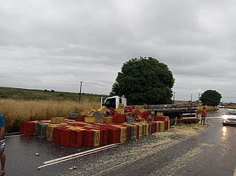 "Estava chovendo muito forte no momento em que o caminhão derrapou na pista. Sorte que ele não tombou, porém a carga acabou caindo e ficou espalhada na pista", disse Carlos de Souza, que passava pelo o local no momento em que tudo aconteceu.