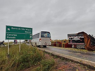 Por causa do acidente, o trânsito ficou interditado em uma das faixas, no sentido Barra de São Miguel/Coruripe.