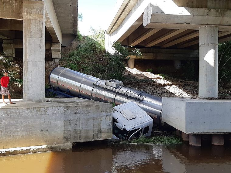 O motorista de um caminhão tanque ficou ferido, na tarde desta segunda-feira (4), depois que o veículo saiu da pista no km 236 da BR-101 e despencou da ponte sobre o Rio Itiuba, no município de Porto Real do Colégio, região do baixo São Francisco de Alagoas.