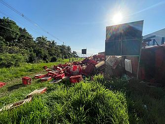 A área vai ser isolada para a remoção necessária do veículo e do que restou da carga. A Polícia Militar esteve no local e não houve registro de trânsito congestionado até às 7h.
