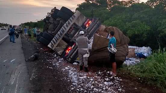 Segundo o Batalhão de Polícia Rodoviária (BPRv), que esteve no local, o caminhão seguia sentido Maceió/Marechal Deodoro quando o condutor teria perdido o controle direcional do automóvel e saído da pista, vindo a capotar.