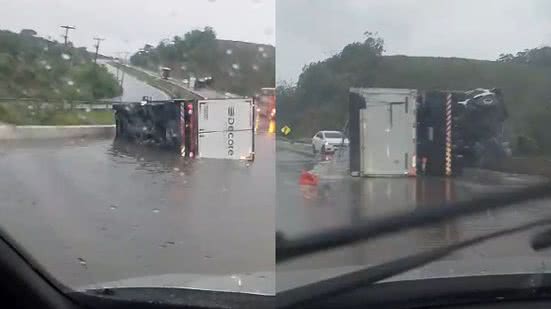 Já no segundo acidente, um outro caminhão foi encontrado tombado às margens da rodovia. Havia acúmulo de água em volta dele, o que pode ter causado o acidente.