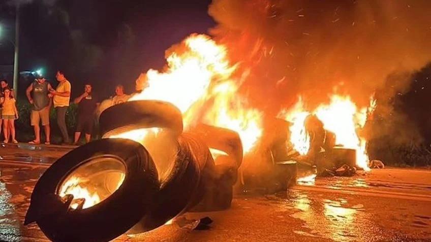 Alguns motoristas usaram seus próprios caminhões de carga para bloquear as vias. Em outros lugares, pneus também foram queimados.