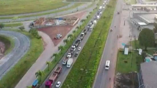 Caminhoneiros bloquearam parcialmente a rodovia BR-316, na região metropolitana de Belém, na manhã desta terça-feira (26). Dentre as reivindicações dos manifestantes, está a redução do ICMS cobrado sobre o óleo diesel no estado.