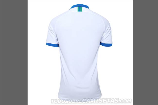O site Todosobrecamisetas divulgou imagens da nova camisa da seleção brasileira para a Copa América de 2019, de 14 de junho a 7 de julho no Brasil. A peça toda branca, com as mangas azuis, que já é vendida em lojas no México, lembra as origens da seleção e a história da mudança.