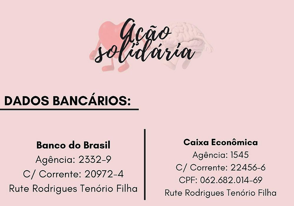 Os interessados em realizar doações devem acessar AQUI para contribuir, ou fazer depósito bancário. Veja abaixo as informações:
