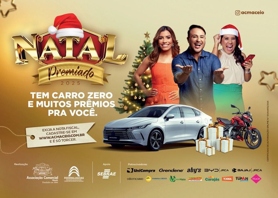 A Associação Comercial de Maceió lançou a campanha 'Natal Premiado', que ocorrerá de 10 de novembro a 5 de janeiro de 2026, com o objetivo de estimular as vendas no comércio local e promover um ambiente festivo entre consumidores e lojistas.