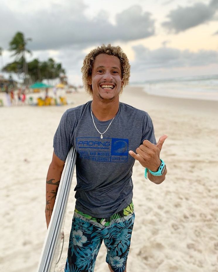 Fora dos campeonatos e treinos, o esporte continua presente na rotina do atleta. É que quando não está encarando as ondas do mar, deninho dá aulas de surf na Praia do Francês. "O surf significa minha vida".