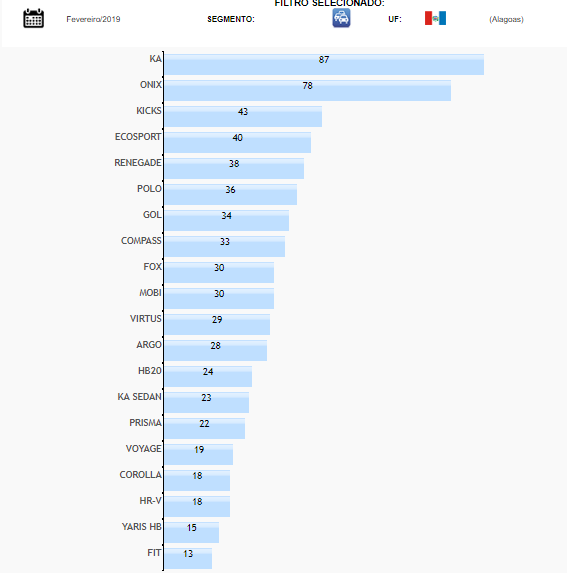 O Pajuçara Auto traz o levantamento parcial das vendas de veículos em Maceió segundo dados da Fenabrave. Levando em conta apenas os primeiros 15 dias de fevereiro, o líder Chevrolet Onix perdeu o posto para o Ford Ka.
